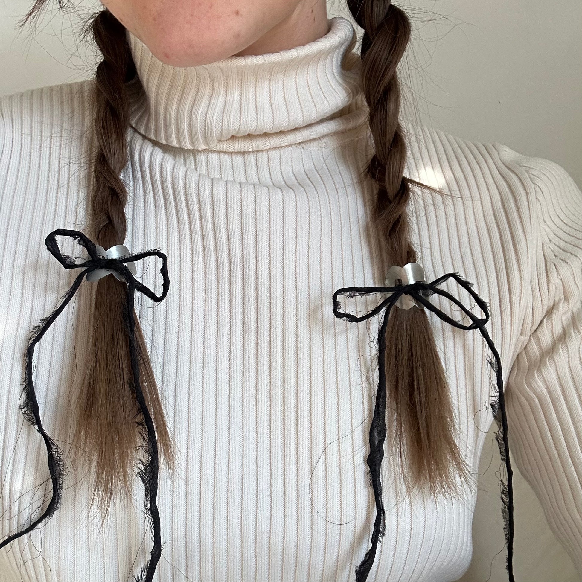 Nickel braid cuffs with black ribbon